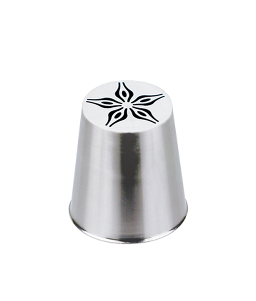 насадка имеет форму шестиконечной звезды с закрытым центром и скошенными лучами. Насадка позволяет сформировать цветок из крема одним движением. Цветок получится как настоящий, со множеством деталей.